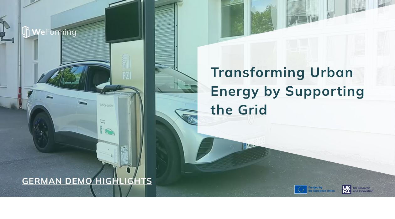 The district is equipped with 26 optimised EV charging points. Modern EVs have batteries large enough to power a household for a week. WeForming aims to tap into this potential with bidirectional charging.